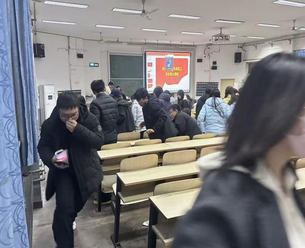 为切实增强师生消防安全意识,提升应急处置能力,进一步筑牢校园安全防线,bv伟德国际1946于2026年3月10日18时在南院7阶梯教室组织开展消防安全知识讲座及应急逃生演练活动。2025级各班宿舍长及学生代表共计100余人参加了此次活动。本次活动特邀bv伟德国际1946党总支书记时代作专题讲解,党总支副书记刘凯、2025 级班主任纪崇霄、邢观洁到场参与,辅导员吴琼主持本次讲座及实操演练。