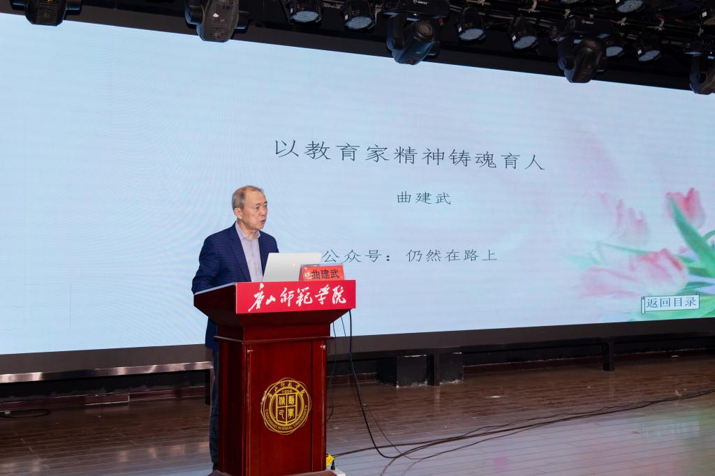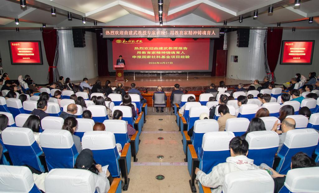 为贯彻落实立德树人根本任务,大力弘扬教育家精神,提升教学科研水平,扎实推进“十五五”工作开局起步,助力建设地方一流师范大学,4月27日学校邀请到“时代楷模”大连海事大学曲建武教授作专题报告。校党委常委、副校长李子林出席活动,全校各院系党总支书记、学生工作全体教师、思政课教师、社科方向博士教师及部分学生代表参加报告会,会议由校科研处、学工部主办,bv伟德国际1946承办,科研处处长王震主持报告会。